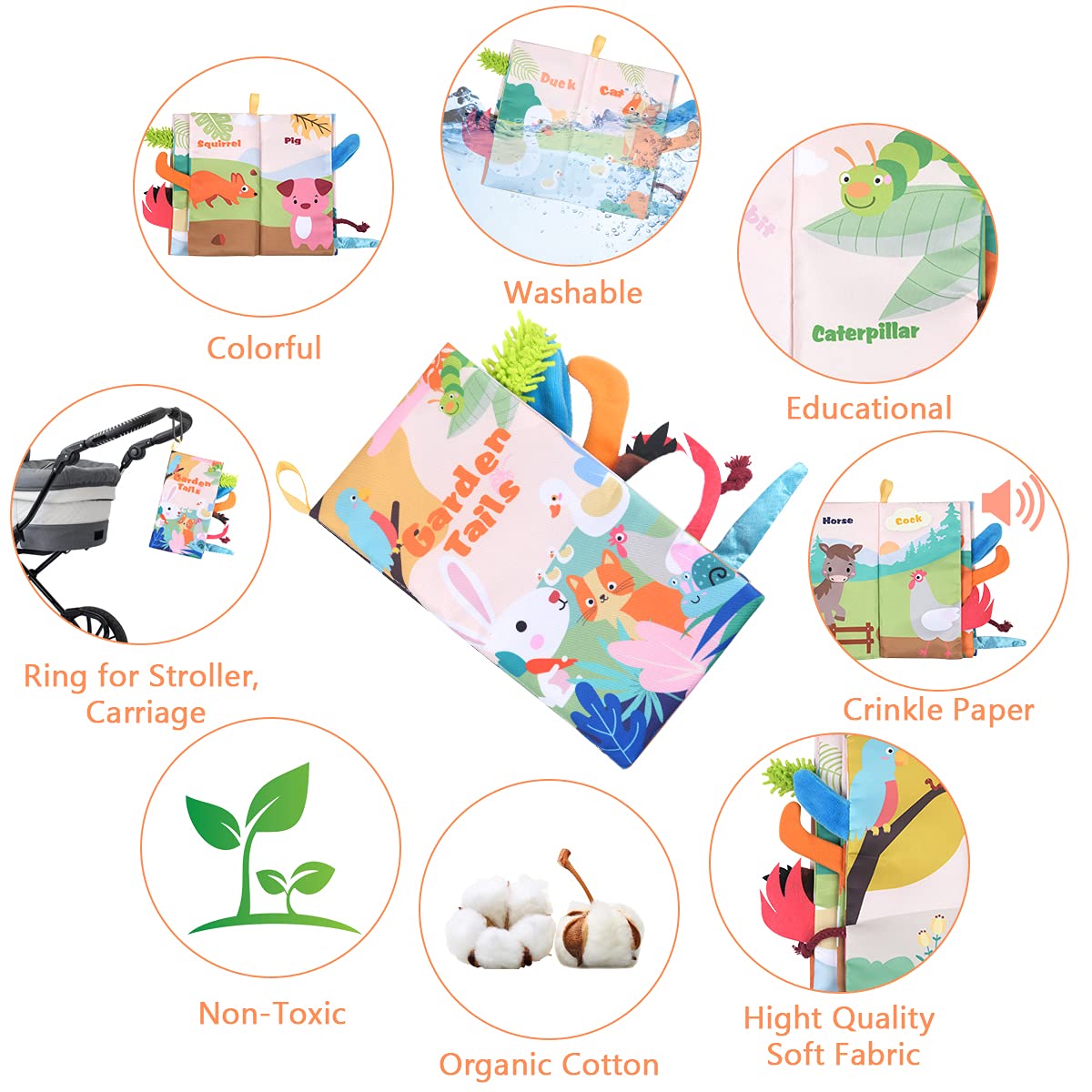 Lernspielzeug für Eplore und Spiel: Knisterbuch für die frühe Entwicklung, die für Kinder unverzichtbar sind. Der Einband unseres Stoffbuches besteht aus Tiermustern in verschiedenen Farben. Viele Tiere ermöglichen Neugeborenen, neue Horizonte besser zu verstehen. Baby-Lernspielzeug kann Babys helfen, die Welt zu verstehen.