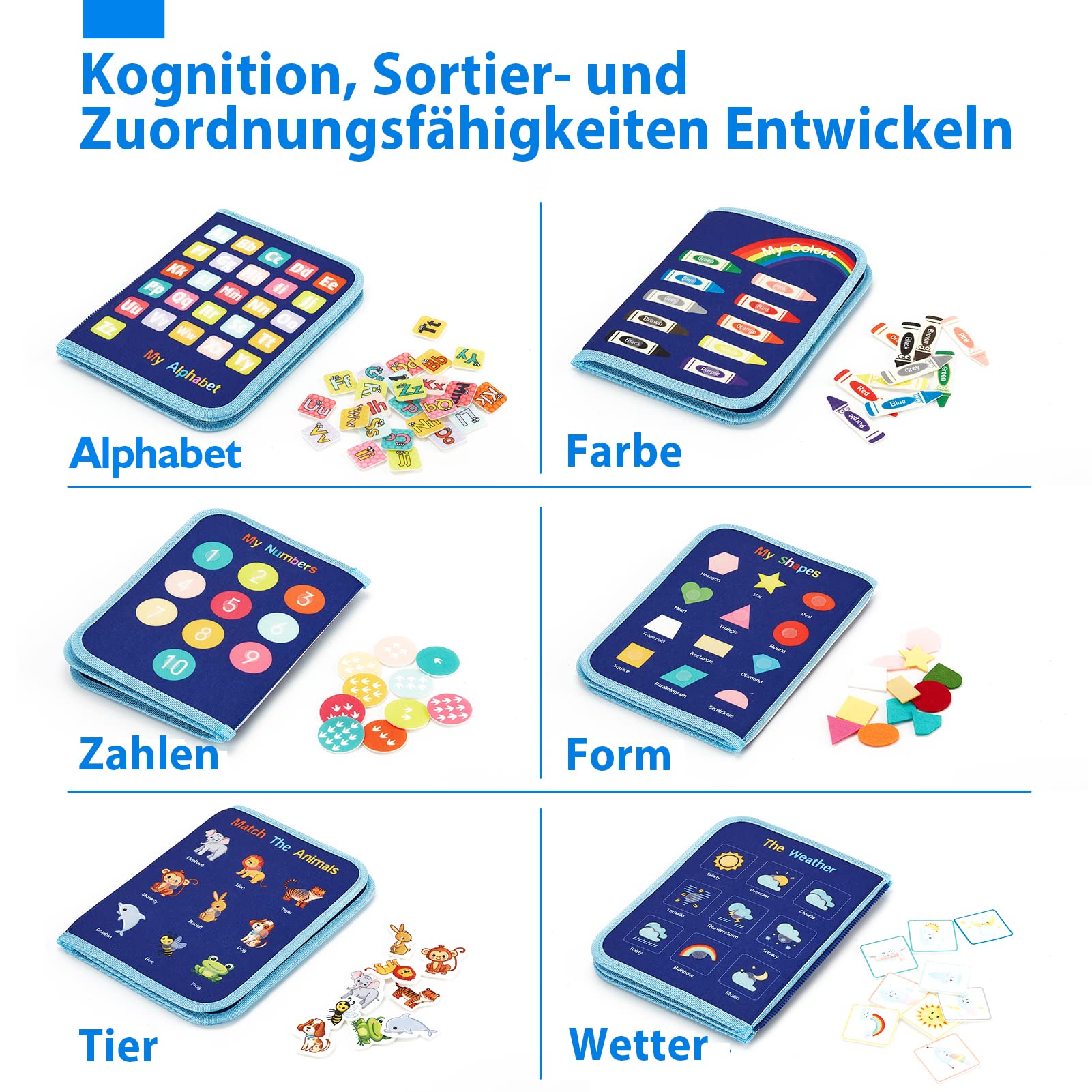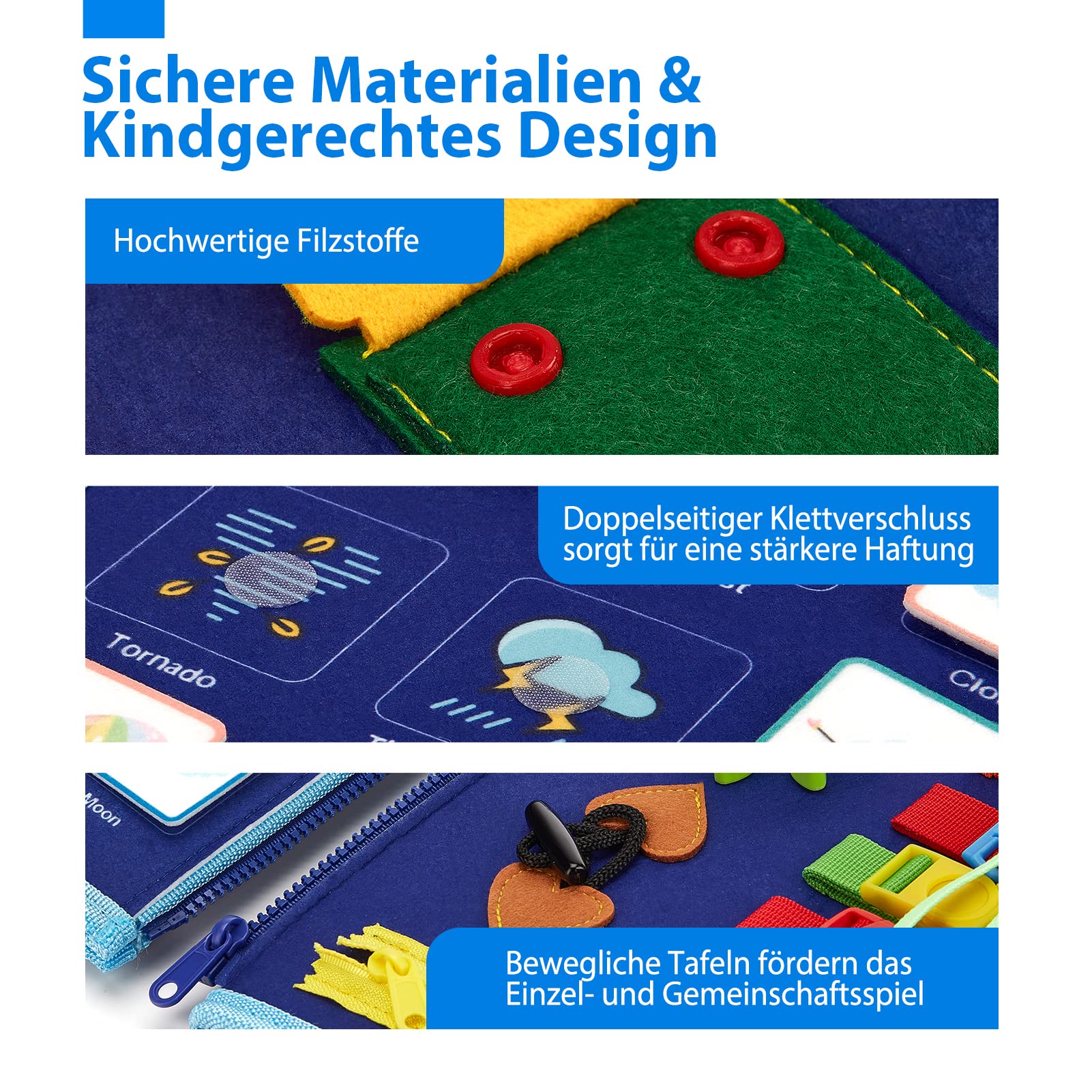 7 in 1 Filz Busy Board Motorikspielzeug, Lernspielzeug ab 1 Jahr, Sensorik & Feinmotorik